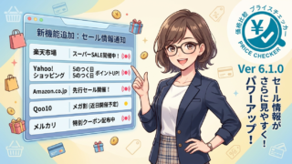 未分類プライスチェッカー v6.1.0 リリース — ツクモ・ドスパラ対応&セールティッカー機能搭載 プライスチェッカー v6.1.0 リリース — ツクモ・ドスパラ対応&セールティッカー機能搭載 「あのパーツ、ツクモとドスパラどっちが安い?」がワンクリックでわかる。さらにセール情報もリアルタイム表示。 プライスチェッカー v6...2026.04.12未分類
